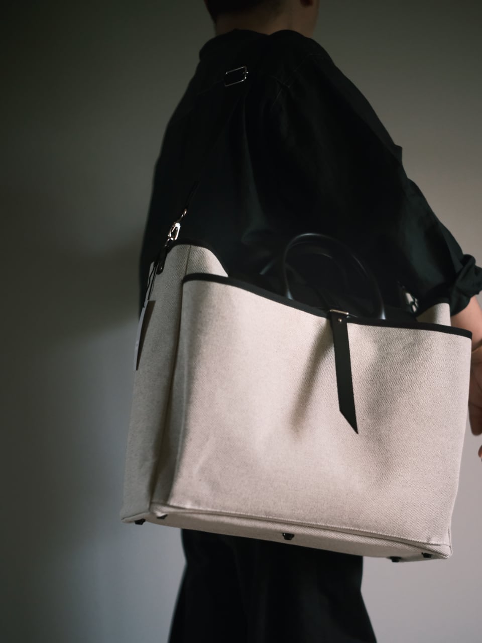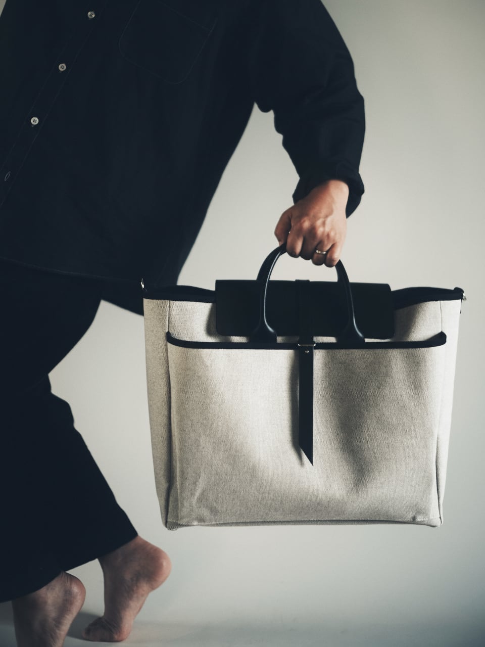 シンプルなデザインだからこその厳選素材。本体にはSouta Bagsオリジナルの約4号相当の国産帆布を使用。生成りと黒糸を限界まで打ち込んだ高密度の丈夫な厚手の生地が自慢です。